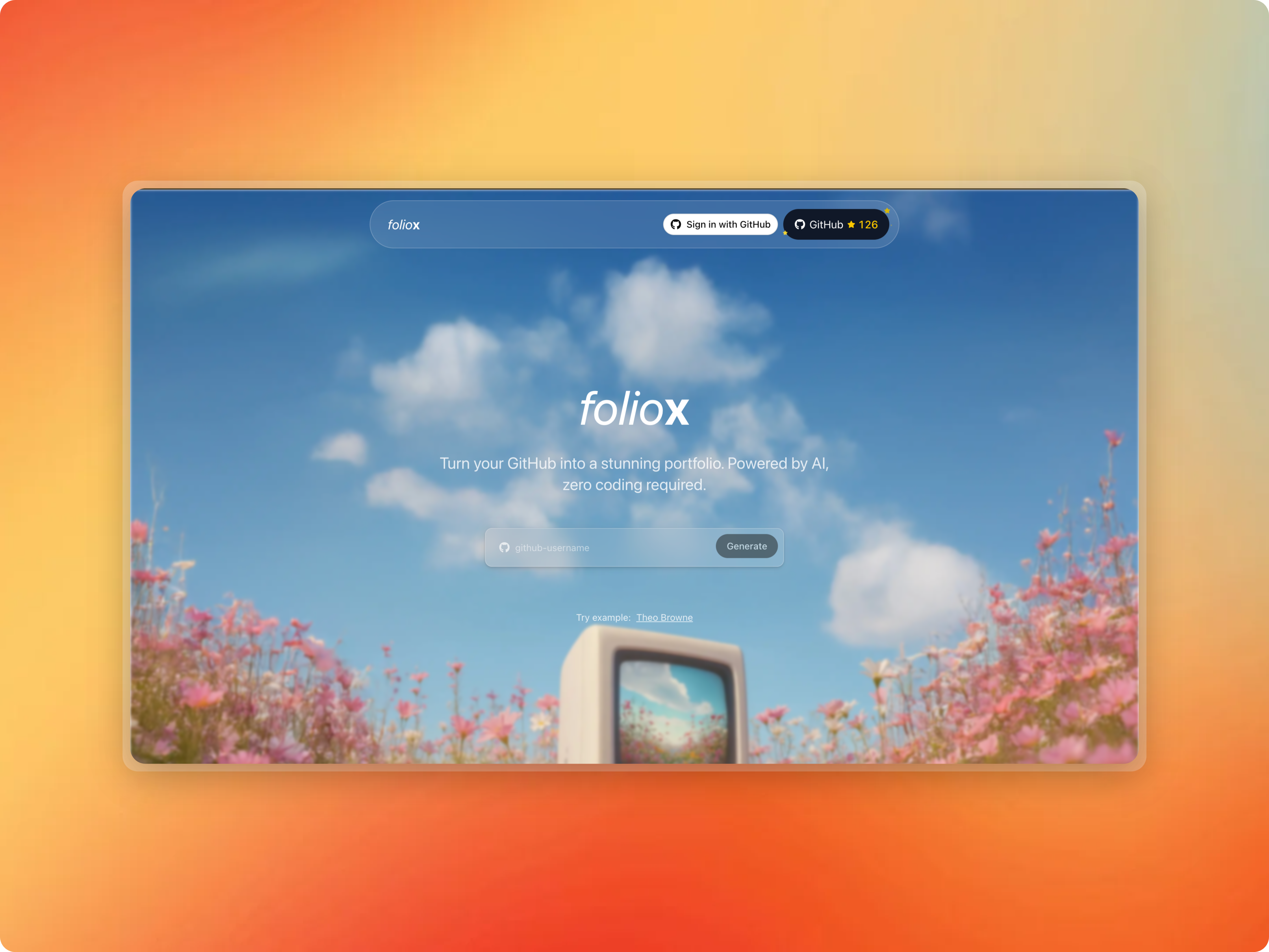Foliox is an AI-powered portfolio generator that automatically creates beautiful developer portfolios from GitHub profiles. It fetches your GitHub data, uses AI to generate professional summaries and highlights, and presents everything in a modern, responsive portfolio website. you can view the tweet here