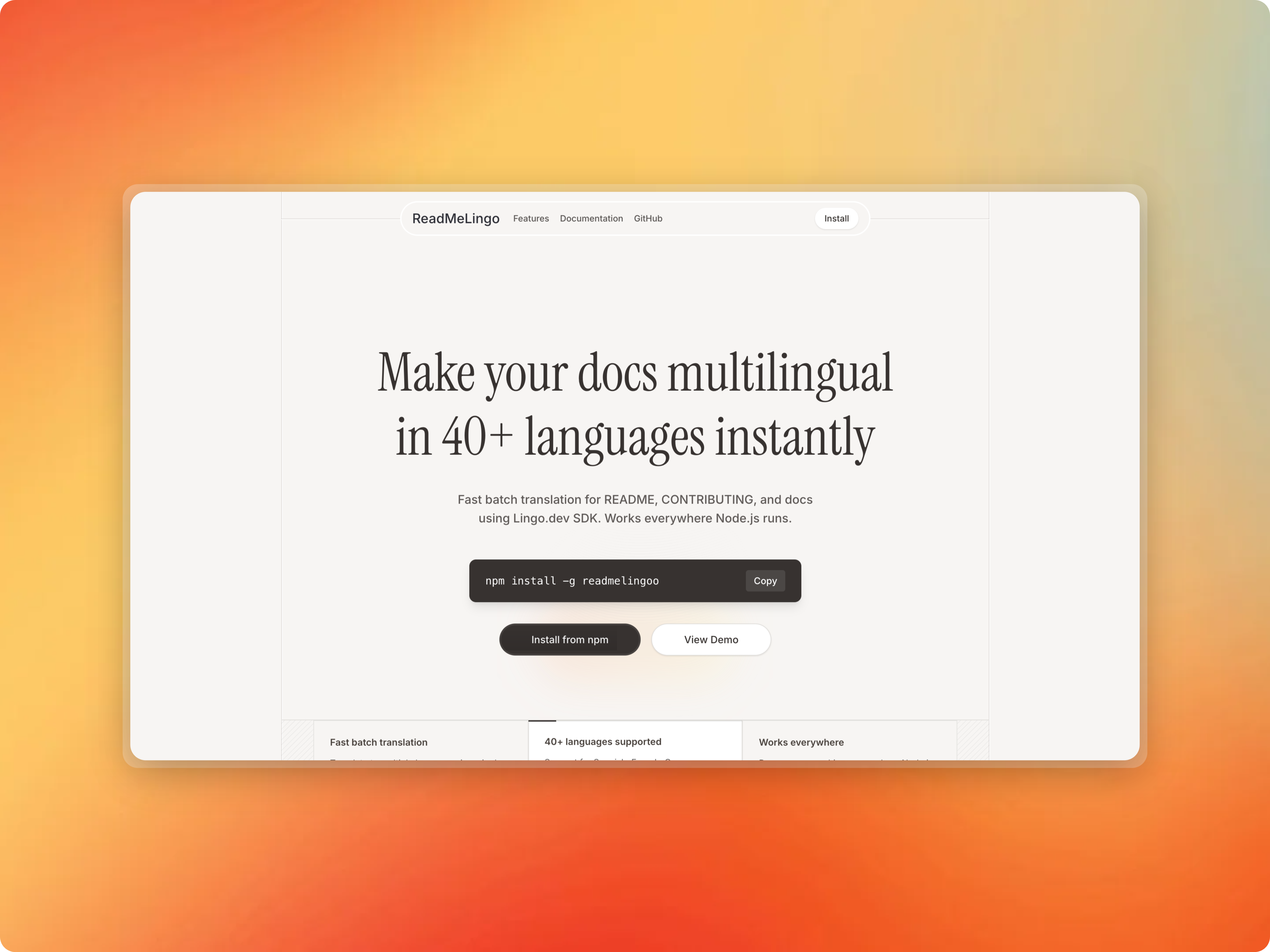 Translate GitHub repository documentation into 40+ languages using Lingo.dev. Fast batch translation CLI tool for README, CONTRIBUTING, and docs. you can view the tweet here
